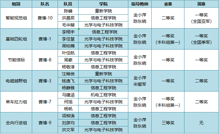近日,第十六屆全國大學生智能汽車競賽總決賽成績揭曉,我校信息工程學院智能車競賽團隊榮獲全國一等獎3項(含全國亞軍1項),全國二等獎2項,省級一等獎4項(含浙江省第一名2項),二等獎1項,三等獎1項,取得我校參賽以來在該項賽事中的最好成績。