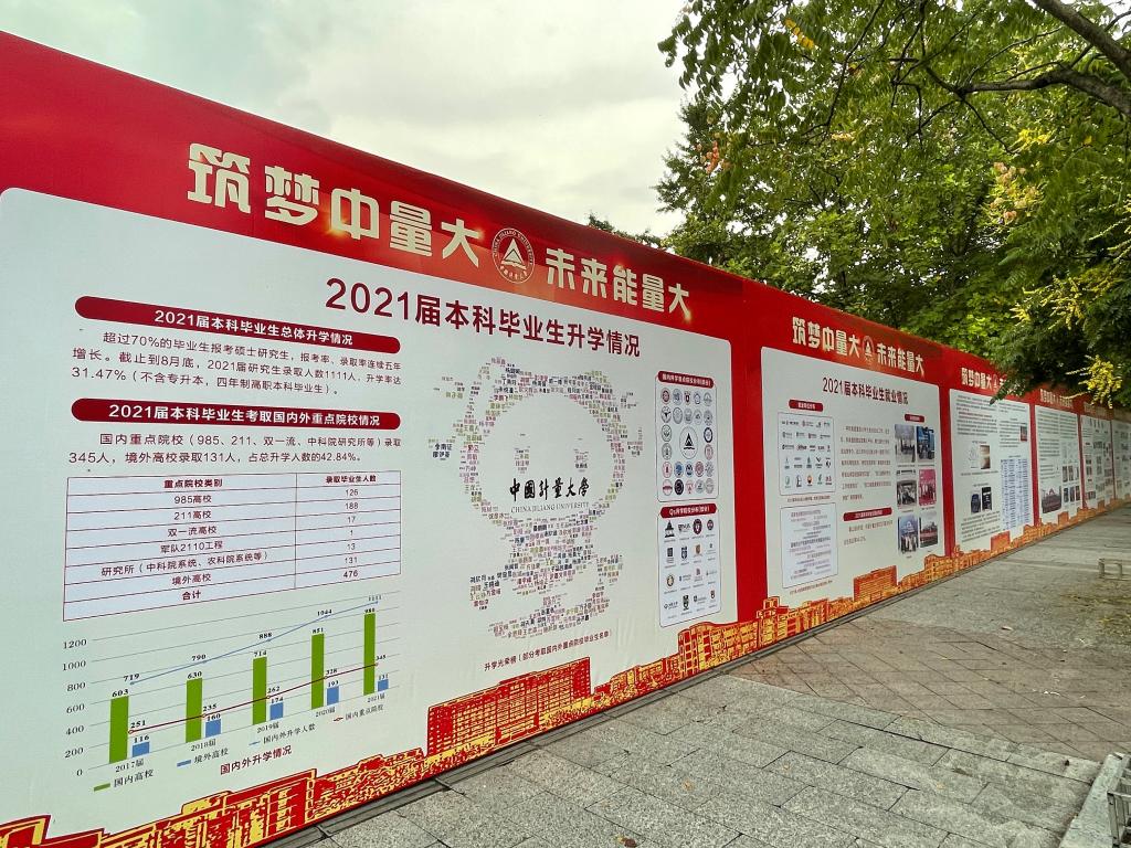“量量拍了拍小手,祝你入學(xué)愉快!”“來到中量大,是雙向的奔赴。”“你已添加了中國計(jì)量大學(xué),現(xiàn)在可以開始聊天了。”還沒走到新生報(bào)到點(diǎn),一條條風(fēng)趣的橫幅標(biāo)語就印入了2021級(jí)新生和家長們的眼簾。