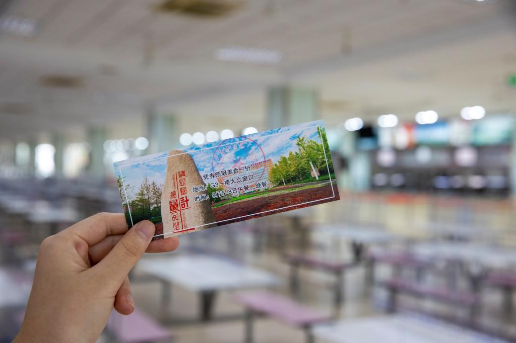 今天,中量大還給前來報(bào)到的同學(xué)們派發(fā)了一份“神秘大禮”。在用餐過程中達(dá)成“光盤”的同學(xué),都可以獲得入校的第一份“禮物”——一張免費(fèi)美食券,憑券可以在規(guī)定時(shí)間內(nèi)去學(xué)校食堂對(duì)應(yīng)窗口領(lǐng)取美食一份,在入校第一天,就將勤儉節(jié)約、熱愛勞動(dòng)的種子扎根在學(xué)生的心中。