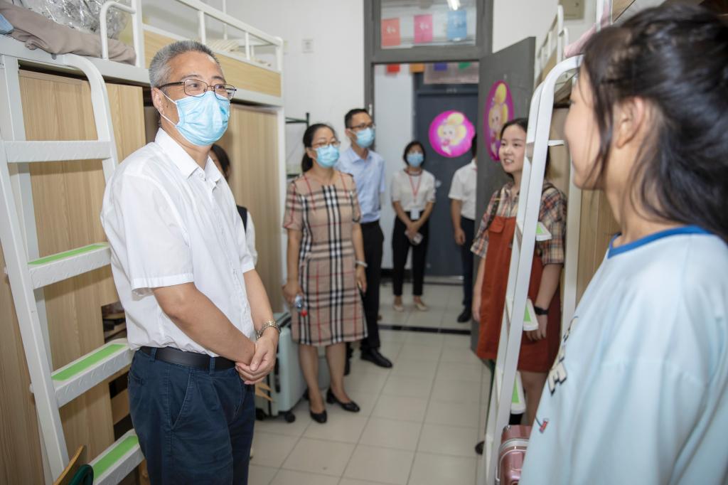 9月4日,我校迎來了全國31個(gè)省份及港澳臺(tái)地區(qū)的2021級(jí)新生。校黨委書記張土喬,黨委副書記程剛,副校長葛洪良、王迪釗,校黨委委員、研究生院院長、現(xiàn)代科技學(xué)院黨委書記張勇及相關(guān)部門負(fù)責(zé)人來到迎新現(xiàn)場,對(duì)各位新生和家長表示歡迎,向工作人員和志愿者表示慰問,并詳細(xì)了解招生和報(bào)到情況。在學(xué)生寢室,他們親切詢問新生家在哪里,入住是否順利,對(duì)大學(xué)生活有怎樣的期待。