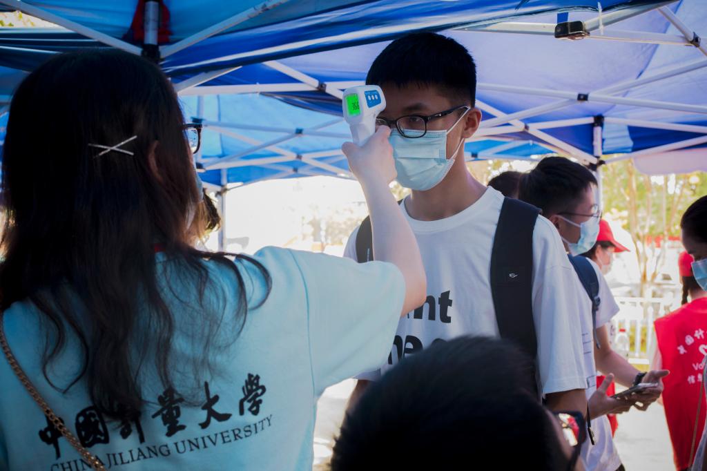 常態(tài)化疫情防控工作和新生入學(xué)資格審查工作是開學(xué)迎新工作的重中之重。學(xué)校高度重視,嚴(yán)格落實(shí)疫情防控和入學(xué)資格審查各項(xiàng)措施,實(shí)行亮碼測(cè)溫入校制度,實(shí)現(xiàn)精密智控。利用迎新系統(tǒng)進(jìn)行人臉識(shí)別身份驗(yàn)證,采集報(bào)到新生的身份證照片、姓名及身份證號(hào)碼分別與新生實(shí)時(shí)照片和錄取的姓名和身份證信息進(jìn)行比對(duì),相似度在80%以上的表示身份驗(yàn)證通過,同時(shí)做好報(bào)到現(xiàn)場照片的留存。學(xué)校在各個(gè)學(xué)院迎新點(diǎn)都配備了充足的額溫槍和免沖洗消毒液、醫(yī)用外科口罩。相關(guān)志愿者和輔導(dǎo)員在各迎新點(diǎn)開展體溫測(cè)量,返校碼、健康碼和行程碼核實(shí),新生信息登記等工作,引導(dǎo)新生入校入寢。