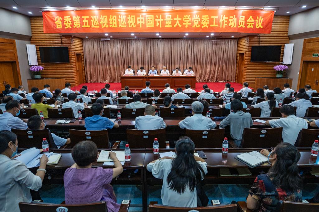 根據省委統一部署,2021年9月13日下午,省委第五巡視組巡視中國計量大學黨委工作動員會議召開。會前,省委第五巡視組組長萬亞偉主持召開與中國計量大學黨委書記張土喬、校長宋明順的見面溝通會,傳達了省委書記專題會議的有關精神,通報了有關工作安排。會上,萬亞偉作了動員講話,對做好巡視工作提出要求。張土喬主持會議并作表態發言。