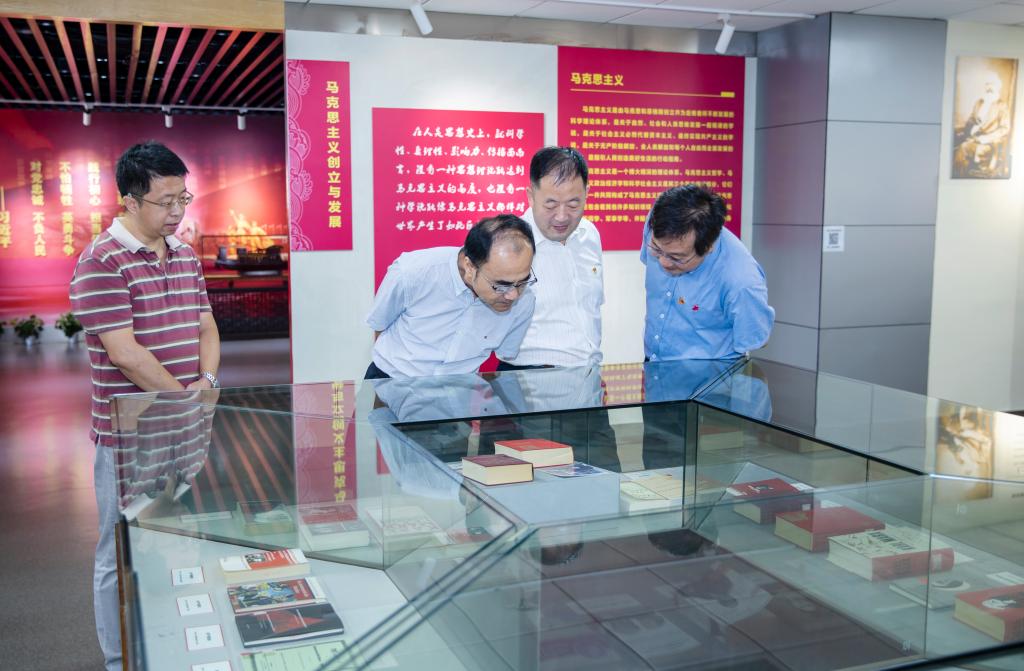 在本次專項督導中,巡回指導組一行還來到位于學校逸夫圖書館的黨史黨建VR館和馬克思主義中國化研究與傳播中心、位于明德北樓一樓的校務服務大廳開展了實地調研。