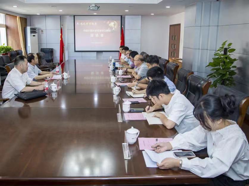 匯報會前,召開了師生黨員代表座談會。計測學院流體裝備與檢測技術研究所黨支部書記牟介剛、生命學院生命系教工黨支部書記韓寶瑜、科技處副處長陳亮、嘉量科技企業管理有限公司副總經理方彬繁、國家知識產權培訓(浙江)基地副主任冀瑜、經管學院辦公室主任吳旭東、后勤服務中心辦公室主任丁軻、馬克思主義學院2020級研究生李美華、標準化學院2019級本科生鄧程薏分別匯報了自身學習“七一”重要講話精神,踐行“三為”實踐活動的感想和體會。