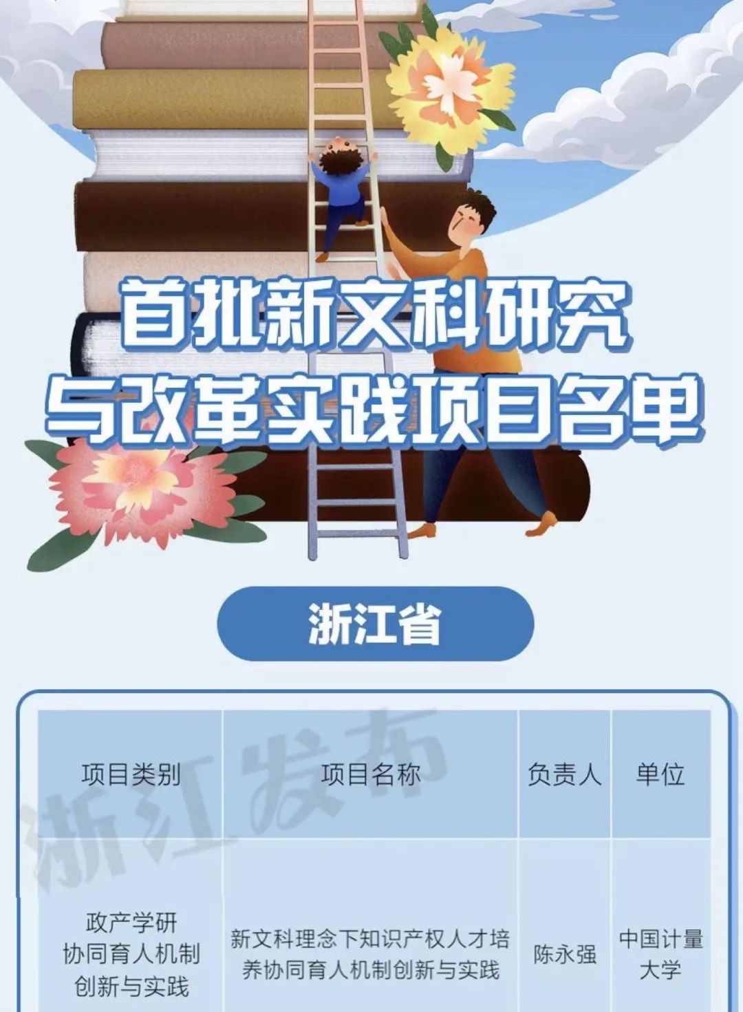 近日,教育部公布首批新文科研究與改革實踐項目名單,我校法學院陳永強教授牽頭申報的項目“新文科理念下知識產權人才培養協同育人機制創新與實踐”成功入選。據悉,“新文科”為教改類最高級別的項目,浙江共有16所高校的26個項目獲批立項,全國范圍內法學類共有76個項目獲準立項。