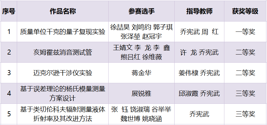 近日,全國大學生物理實驗競賽組委會公布了2021全國大學生物理實驗競賽(創新)獲獎名單。我校共選拔了5支隊伍參加比賽,5支隊伍全部獲獎,在全國470所高校、1629組作品中脫穎而出,獲得一等獎1項、二等獎2項、三等獎2項的優異成績。