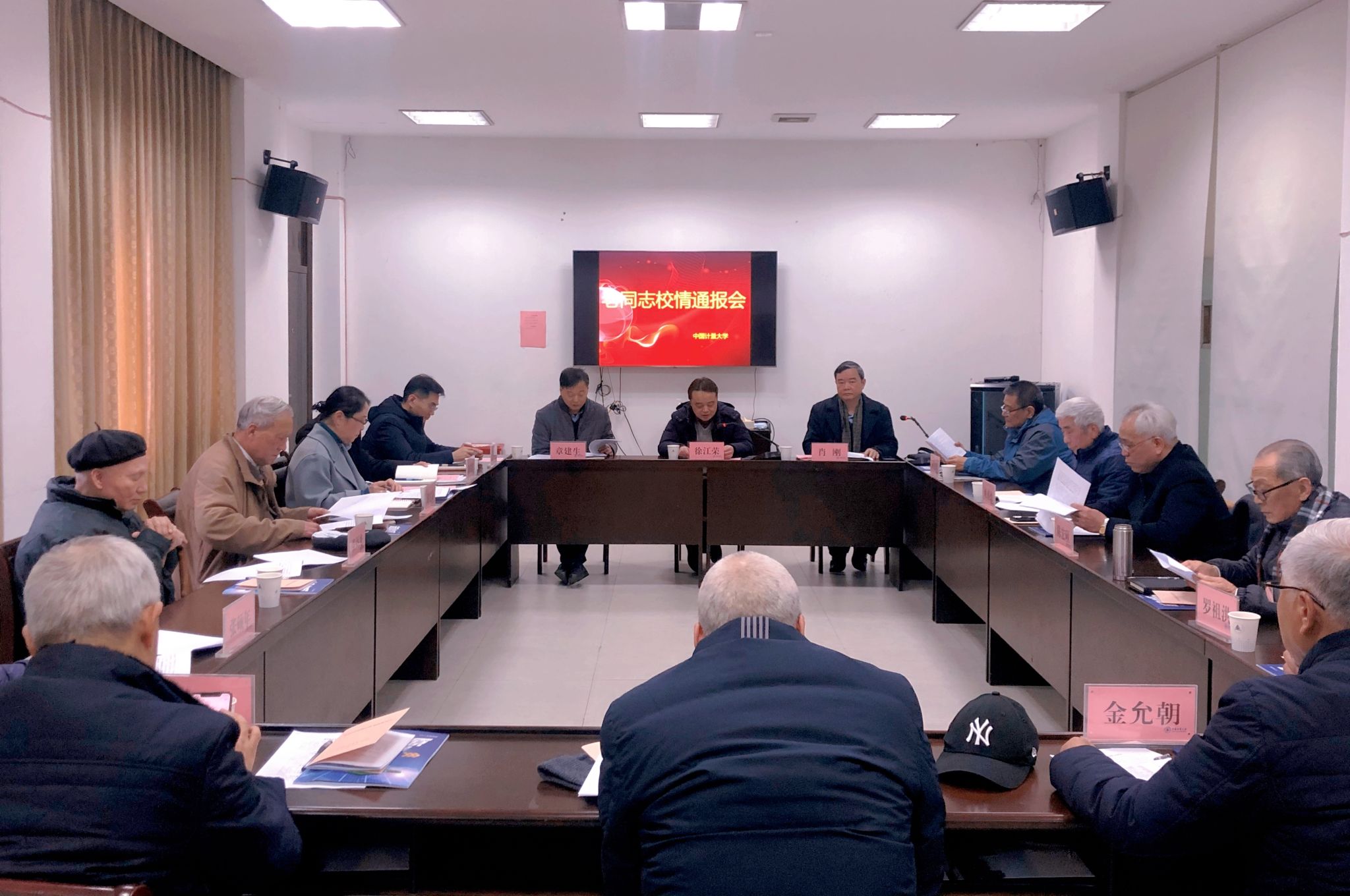 定期向離退休老同志通報學校年度工作情況,聽取其意見建議,是學校長期堅持的優良傳統和制度性安排。1月13日,學校在離退休工作處召開2021年度老同志校情通報會暨巡視整改座談會,向離退休老同志代表通報學校建設發展情況。校長徐江榮,校黨委副書記肖剛,校紀委書記章建生,黨委委員、組織部部長、統戰部部長王斌銳出席會議。離退休老領導、學校辦公室和離退休工作處負責人等參加了會議。會議由肖剛主持。