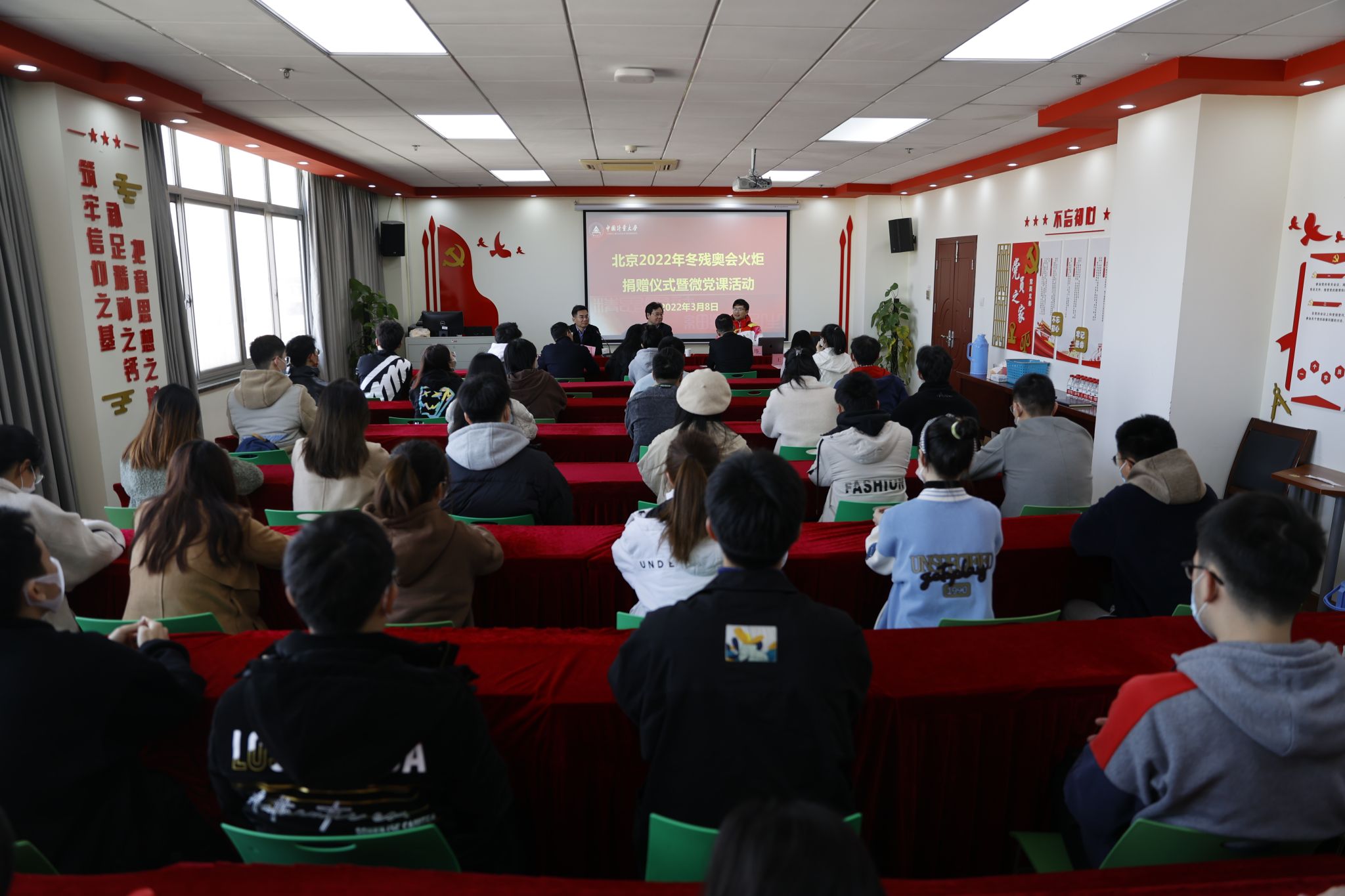 3月8日,中國計量大學舉辦冬殘奧會火炬捐贈活動,邀請北京2022年冬殘奧會第43棒火炬手、法學院教工黨員虞偉為青年學生黨員上微黨課,開啟了火炬再傳遞、綠色理念再分享之旅。校黨委副書記程剛,校黨委委員、組織部部長王斌銳,相關職能部門負責人,學生黨員代表參加活動。