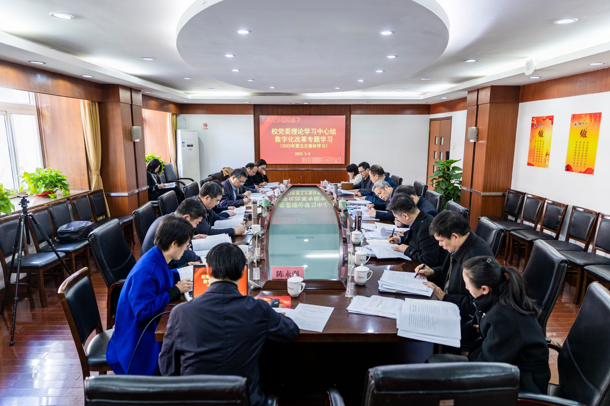 3月8日下午,校黨委理論學習中心組舉行“數字化改革”專題學習會,系統學習習近平總書記關于數字經濟、數字中國、數字浙江的系列重要論述精神,習近平總書記《不斷做強做優做大我國數字經濟》重要文章精神,浙江省數字化改革大會、數字化改革例會、座談會、推進會精神,《浙江省數字化改革標準化體系建設方案(2021-2025年)》精神、省教育廳印發的《浙江省教育領域數字化改革工作方案》。校黨委書記張土喬主持會議,校黨政領導班子成員參加會議。