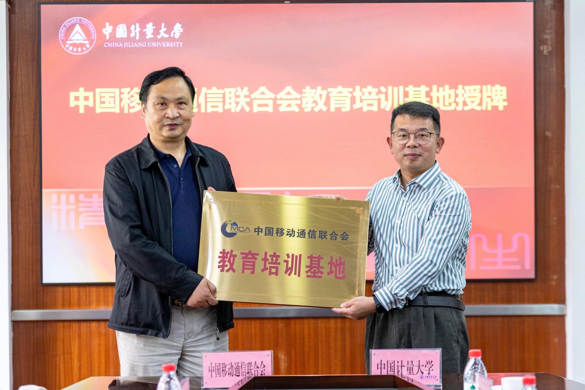 吳紀魁和葛洪良代表雙方簽署合作協議,倪健中為我校繼續教育學院頒授“中國移動通信聯合會教育培訓基地”銅牌,雙方就合作內容進行了交流和探討。