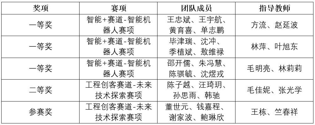 近日,浙江省大學生工程實踐與創新能力大賽(原第八屆浙江省大學生工程訓練綜合能力競賽)獲獎名單正式揭曉,我校學子發揮出色,共獲得省一等獎3項,省二等獎1項,參賽獎1項。其中,在“智能+”賽道-智能機器人賽項中我校三支參賽隊伍全部獲得省一等獎,獲獎成績位居全省高校第一。