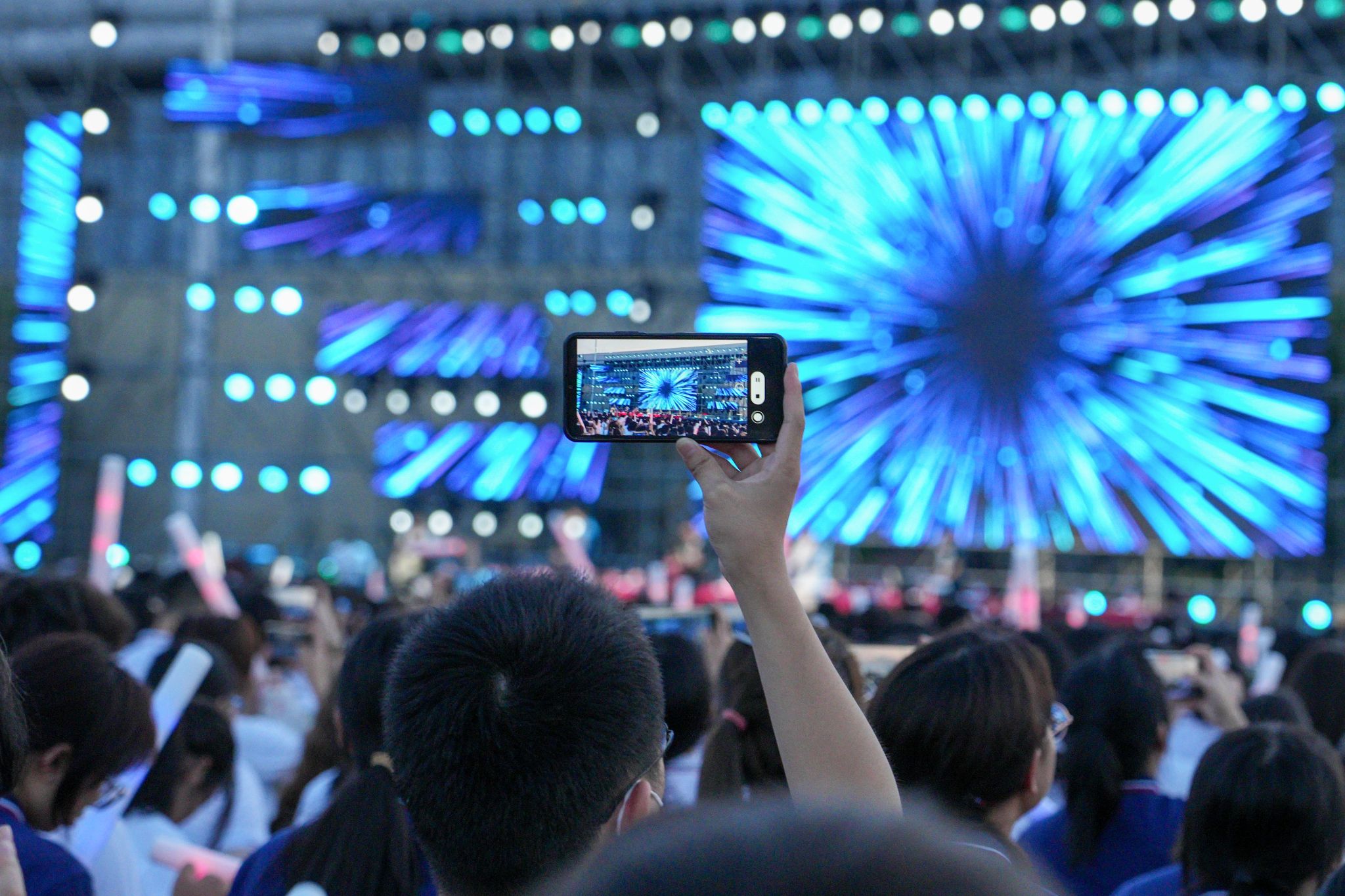 這次的開學典禮可謂賺足眼球。身著白、藍兩種顏色服裝的2022級新生們陸續落座,組成一個巨大的“CJLU”,并通過無人機俯拍投映在屏幕上,場面十分震撼。此外,現場還擺放了發光立牌“中量大歡迎你”以及合影板手牌。伴著激情熱烈的暖場音樂,新生們揮舞著手中的熒光棒,一張張青春洋溢的臉龐讓人感受到無盡的活力。