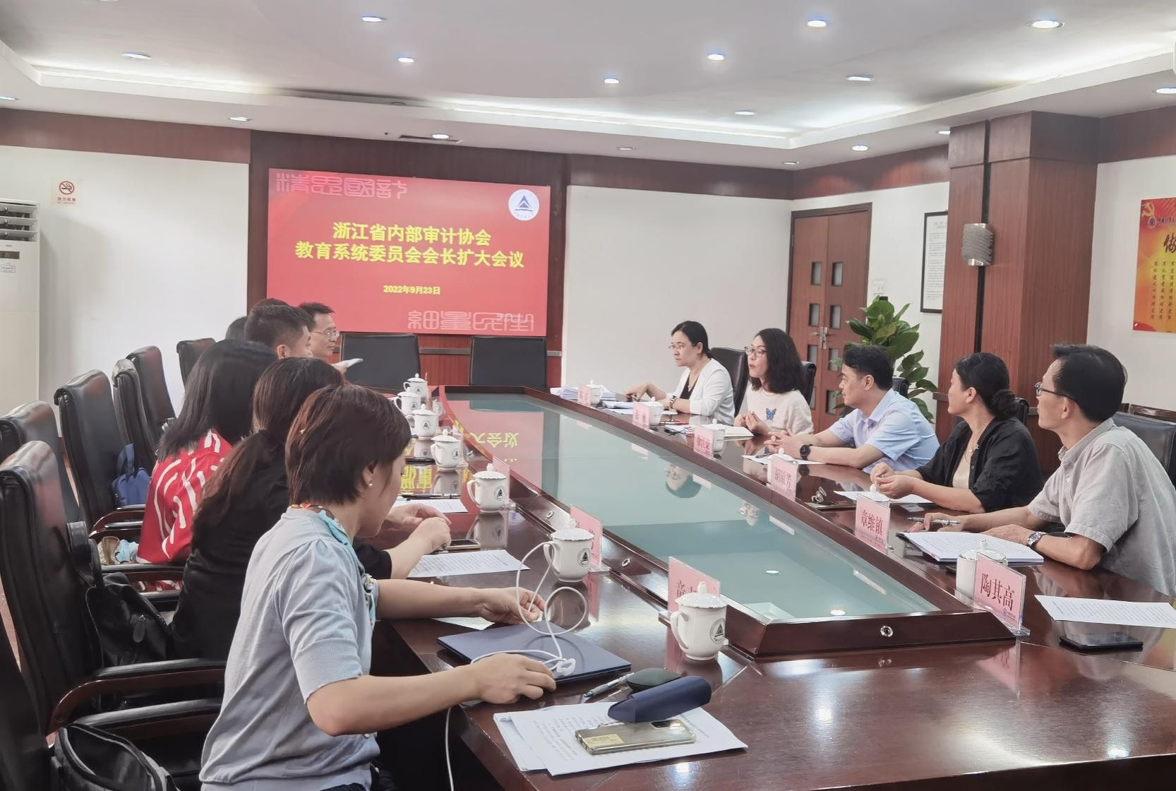 9月23日,浙江省內部審計協會教育系統委員會會長擴大會議在我校召開。校長徐江榮應邀出席并致歡迎詞,省內審協會教育系統委員會副主任、省教育廳審計處處長張榮斐,省內審協會教育系統委員會副主任、省審計廳教科文審計處副處長張韌成出席會議,省內審協會教育系統委員會秘書長及各內設機構負責人參加會議。