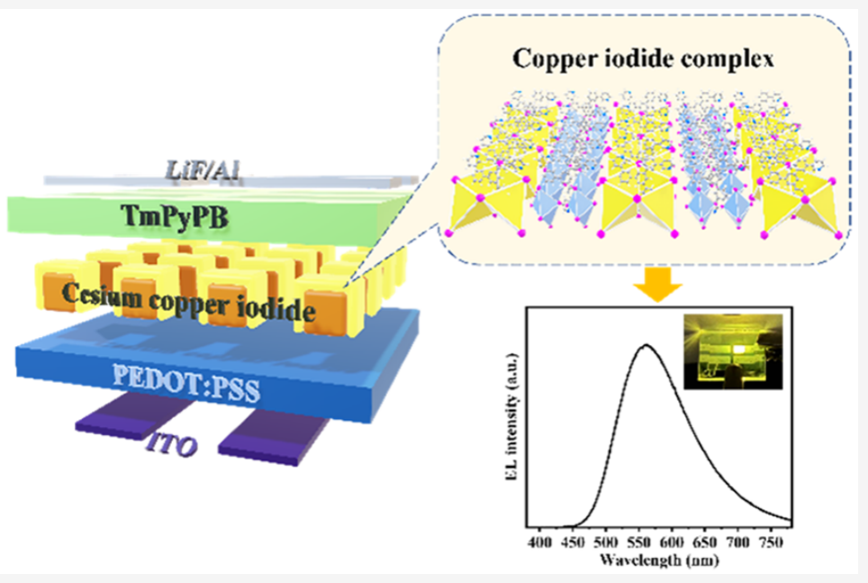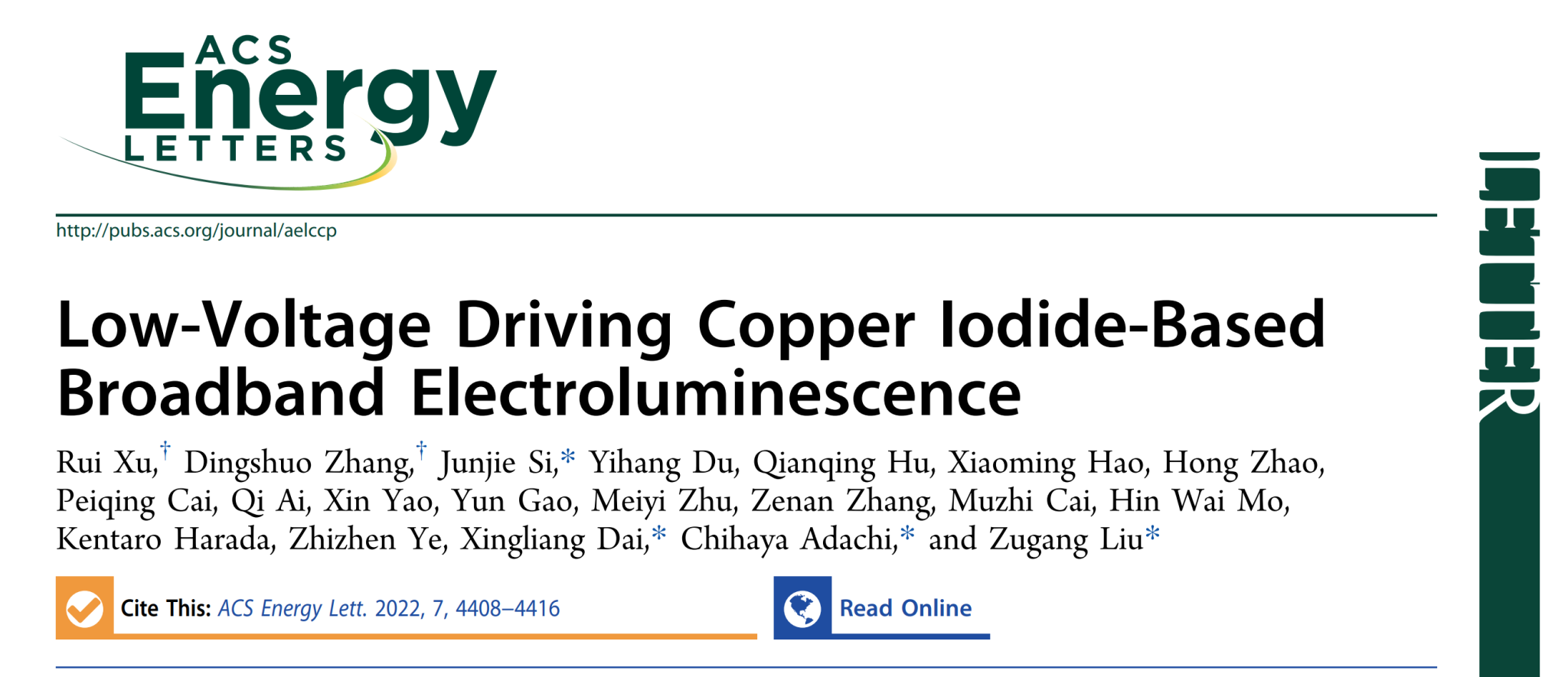 近日,我校光學(xué)與電子科技學(xué)院劉祖剛教授團(tuán)隊(duì)在國(guó)際著名學(xué)術(shù)期刊ASC Energy Letter(IF 23.991,中科院1區(qū))上,發(fā)表題為“Low-Voltage Driving Copper Iodide-Based Broadband Electroluminescence”的高水平論文。第一作者為我校光學(xué)與電子科技學(xué)院印刷光電子團(tuán)隊(duì)研究生徐銳同學(xué),我校青年教師司俊杰博士為第一通訊作者,劉祖剛教授為共同通訊作者。