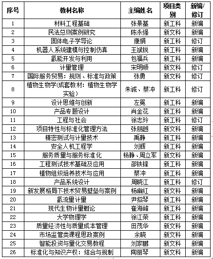 近日,浙江省高等教育學會公布了浙江省普通本科高校“十四五”首批新工科、新文科、新醫科、新農科重點教材建設項目評審結果。我校26部(套)教材獲批立項,其中包括5部通過浙江省高等學校教學指導委員會推薦的教材(表格中序號22-26為浙江省高等學校教學指導委員會推薦教材)。