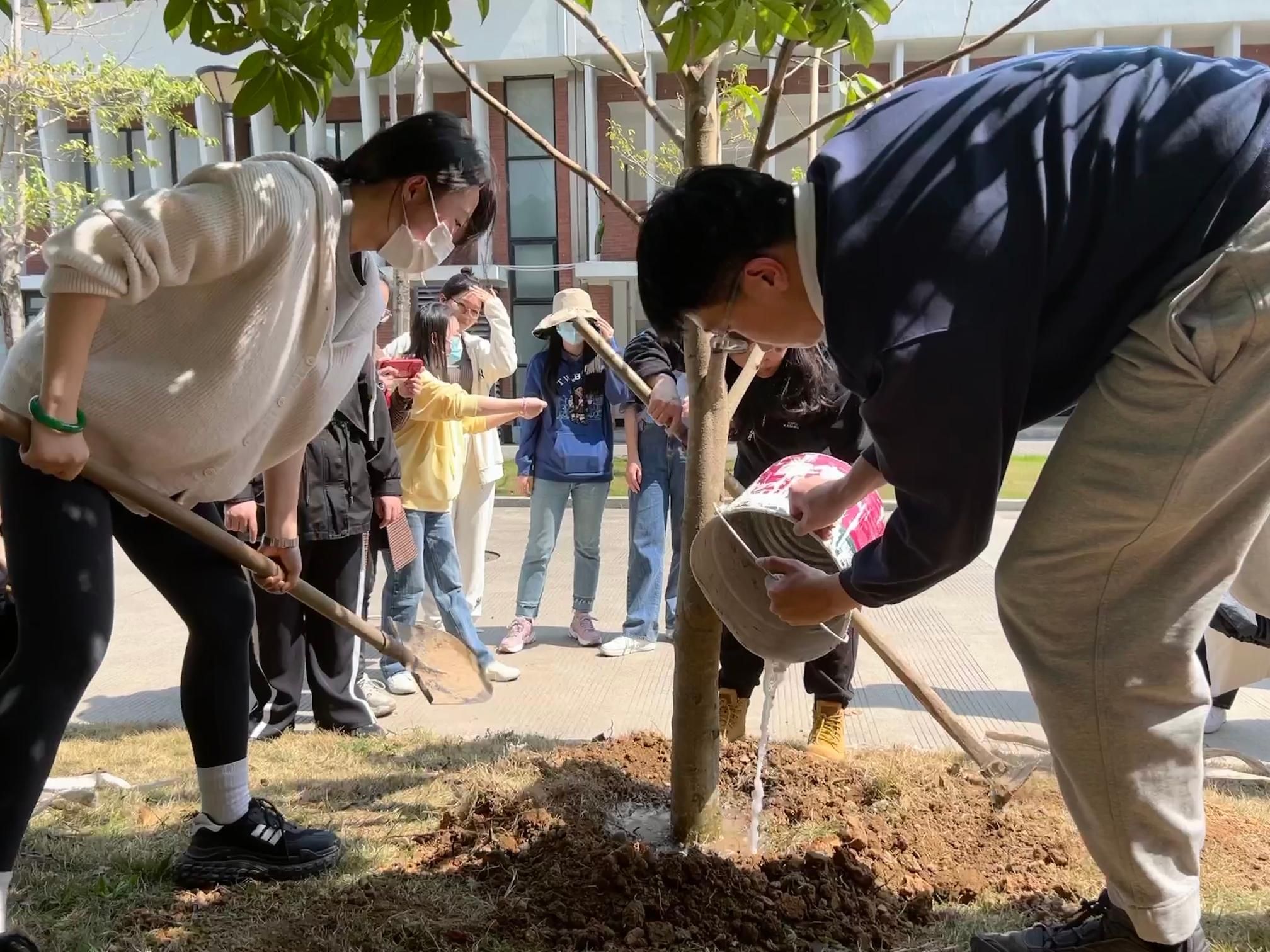 活動號召一經發起就得到了廣大師生的積極響應,踴躍報名。參與現場植樹的師生中,有支部團體,有寢室舍友,有大一新人,也有即將畢業的老生,他們在綠化員工的指導下,揮鍬鏟土、扶樹回填、提水澆灌,共同植下了一棵棵“友誼樹”,為校園增添了幾分綠意,為自己留下了特殊的校園回憶。