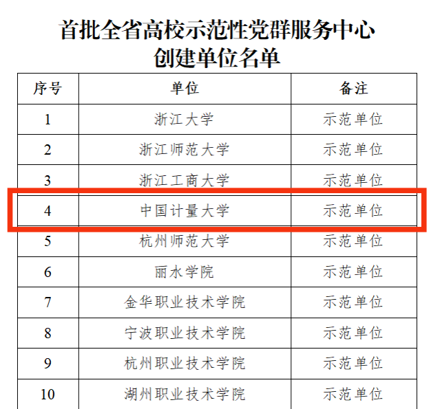 3月10日,中共浙江省委教育工作委員會(huì)辦公室印發(fā)《關(guān)于公布首批全省高校示范性黨群服務(wù)中心創(chuàng)建單位名單的通知》,經(jīng)學(xué)校申報(bào)、專家審核、入校考察、公示等環(huán)節(jié),確定10家首批全省高校示范性黨群服務(wù)中心示范單位、20家培育單位。我校申報(bào)的中國(guó)計(jì)量大學(xué)黨群服務(wù)中心矩陣成功入選首批全省高校示范單位。