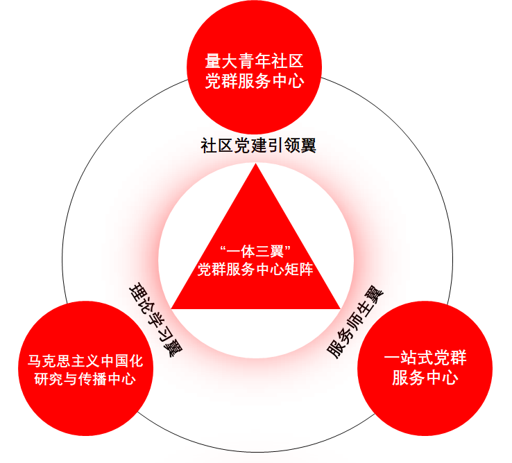 據(jù)悉,學(xué)校黨委深入學(xué)習(xí)宣傳貫徹黨的二十大精神,高度重視黨群服務(wù)中心建設(shè),根據(jù)浙江省委全面實(shí)施“紅色根脈強(qiáng)基工程”、“四個(gè)融合”行動(dòng)、深化“抓院促系、整校建強(qiáng)”工程等文件要求,按照“黨委領(lǐng)導(dǎo)、統(tǒng)籌布局、多方參與、共建共享”的原則,著力打造“一體三翼”的黨群服務(wù)中心矩陣,即:以黨群服務(wù)中心建設(shè)為主體,以打造理論學(xué)習(xí)翼建立馬克思主義中國(guó)化研究與傳播中心,以打造服務(wù)師生翼建立一站式黨群服務(wù)中心,以打造社區(qū)黨建引領(lǐng)翼建立量大青年社區(qū)黨群服務(wù)中心。