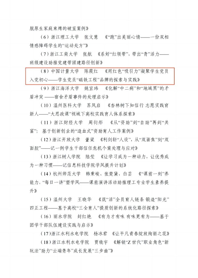 第五屆浙江省高校輔導(dǎo)員工作案例大賽獲獎名單-中國計量大學(xué)
