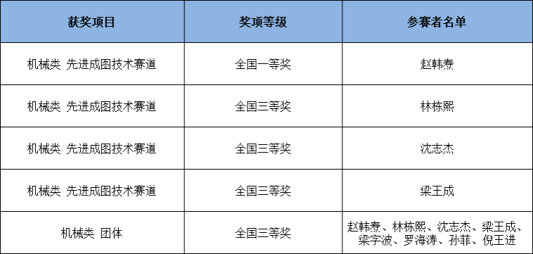 本屆成圖大賽是我校第二次組隊(duì)參加,共獲得了一等獎(jiǎng)1項(xiàng)、三等獎(jiǎng)4項(xiàng),獲獎(jiǎng)數(shù)量和質(zhì)量有了顯著提高。其中趙韓燾同學(xué)在先進(jìn)成圖技術(shù)賽道項(xiàng)目上獲得了一等獎(jiǎng)并且位居前列,這是我校學(xué)子首次獲得成圖大賽全國一等獎(jiǎng)。工程訓(xùn)練中心、創(chuàng)新學(xué)院方流、葉豐、鄭小飛3位老師和機(jī)電工程學(xué)院陶云老師獲得機(jī)械類優(yōu)秀指導(dǎo)教師三等獎(jiǎng)。