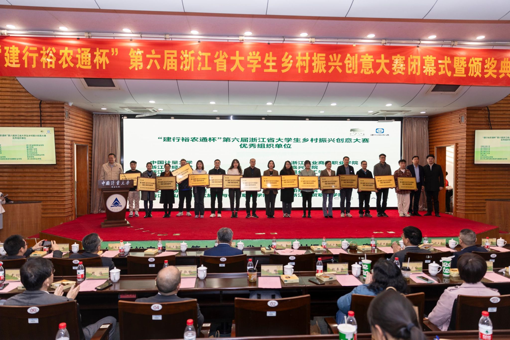 我校校長徐江榮在頒獎典禮上致辭。他向各主辦單位表示感謝,并對獲獎的團隊表示熱烈祝賀。他表示,大學生鄉村振興創意大賽在高校和鄉村之間構建起一座青春之橋,引領了更多的高校師生們帶著課題與項目深入鄉村,以實際行動助推鄉村農文旅融合發展,是深入踐行“八八戰略”和“千萬工程”的生動體現。中國計量大學將充分發揮計量、標準、質量、市場監管和檢驗檢疫的辦學特色,為建設共同富裕示范區、打造“重要窗口”繼續貢獻計量力量。
