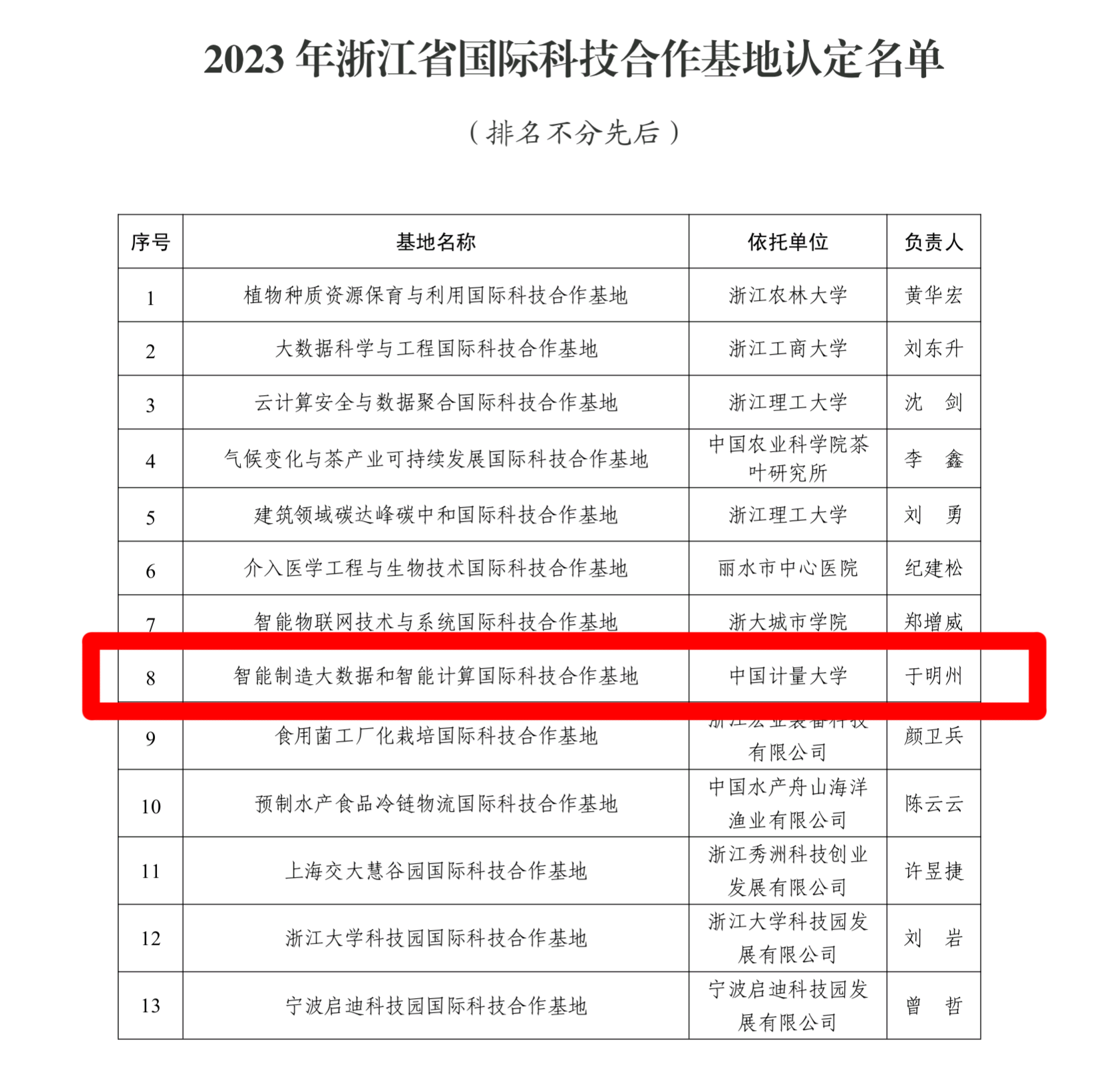 近日,浙江省科學技術廳公布了2023年度省級國際科技合作載體認定名單,我校“智能制造大數據和智能計算國際科技合作基地”被認定為2023年度浙江省國際科技合作基地。