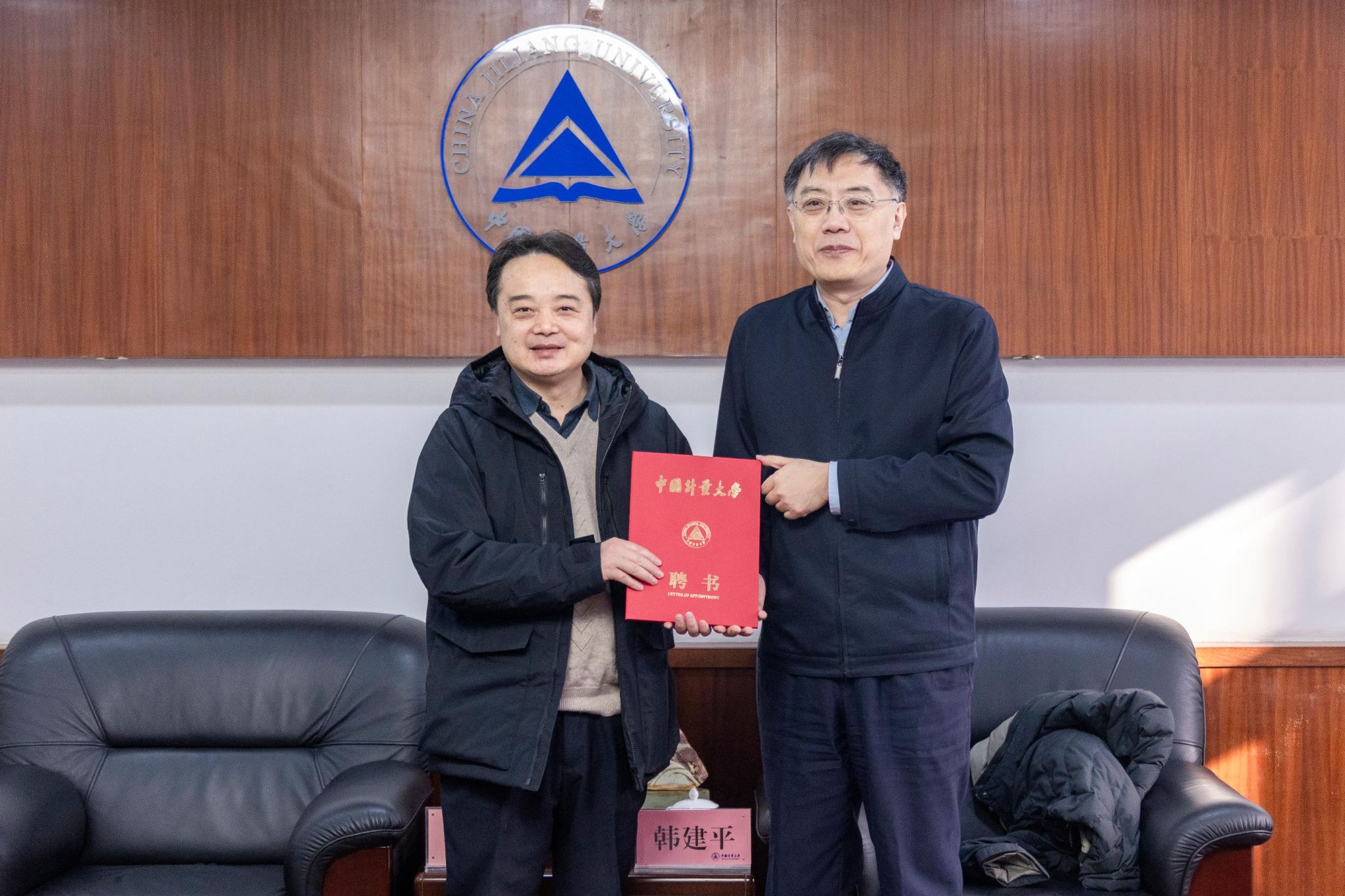 會議開始前,學校校長徐江榮在明德南樓209會議室親切會見與會嘉賓,并向韓建平頒發“中國計量大學客座教授”聘書。