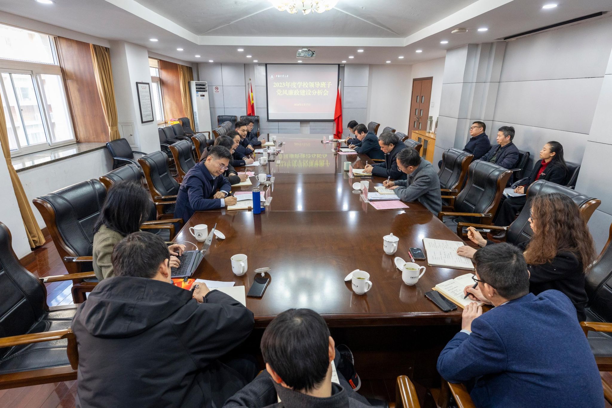 本次黨風廉政建設分析會主題是“對照省委教育工委交叉巡察反饋共性問題整改及“五張責任清單”落實情況,結合學習貫徹習近平新時代中國特色社會主義思想主題教育開展情況,分析研判全面從嚴治黨“兩個責任”和黨風廉政建設責任制落實情況,重點分析黨委主體責任、黨委書記第一責任、班子成員“一崗雙責”及紀委監督責任的貫徹落實情況,主動查擺問題,深挖問題根源,制定行之有效的整改方案,并逐項抓好整改落實。”領導班子成員嚴格按照分析會方案要求,圍繞會議主題,結合工作實際,積極落實各項會前準備工作。