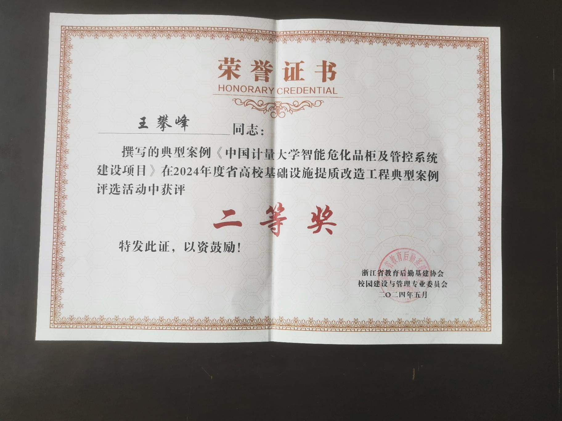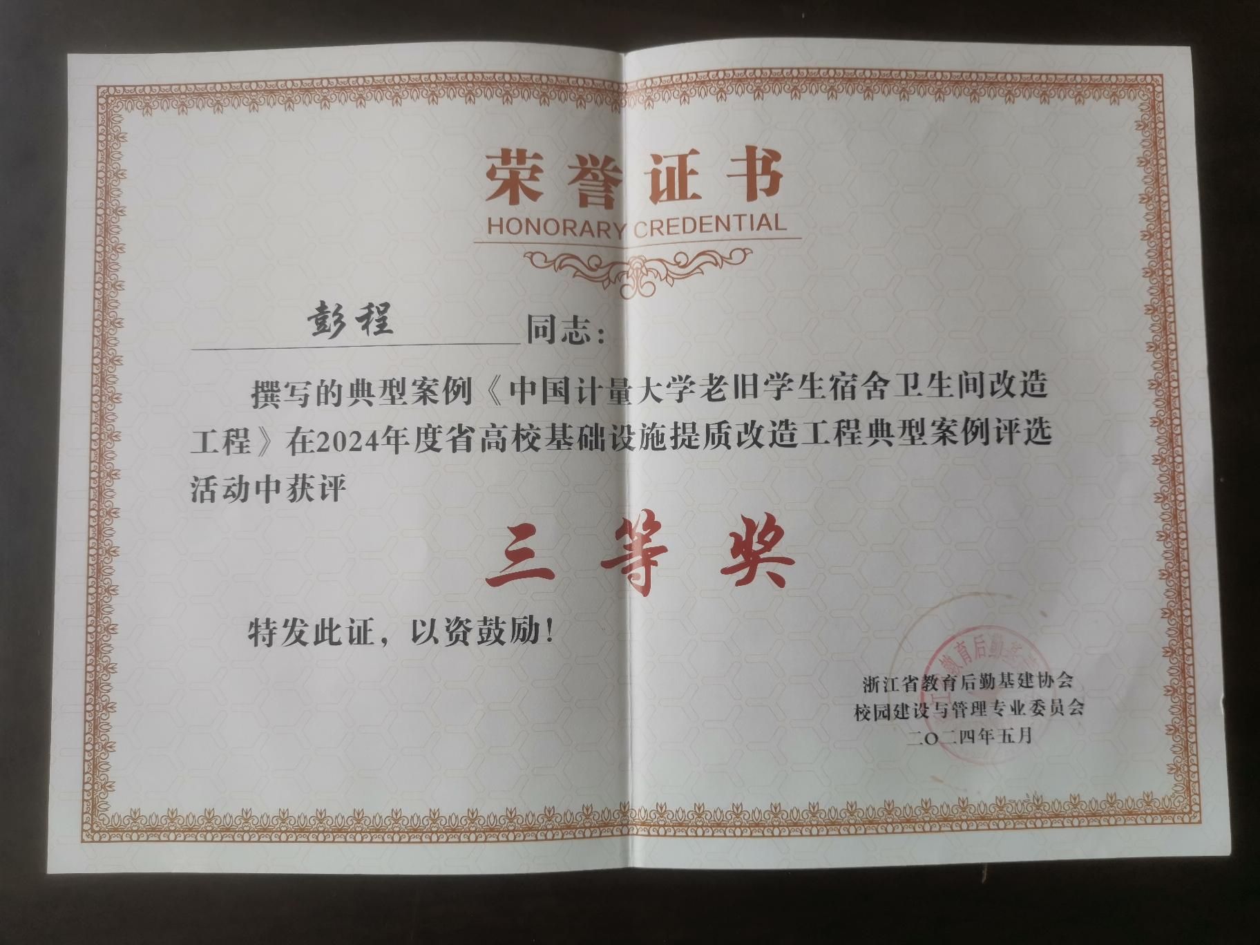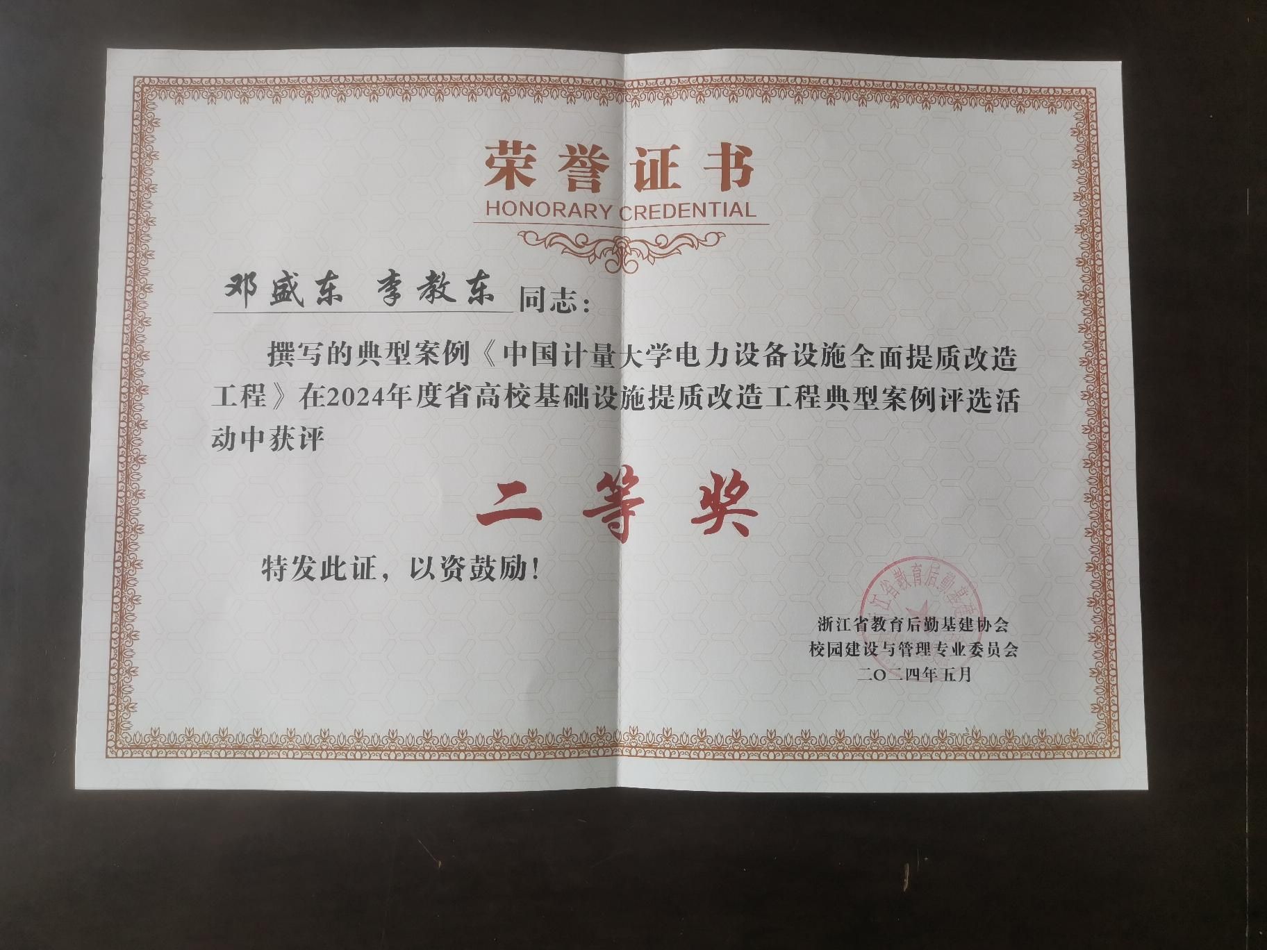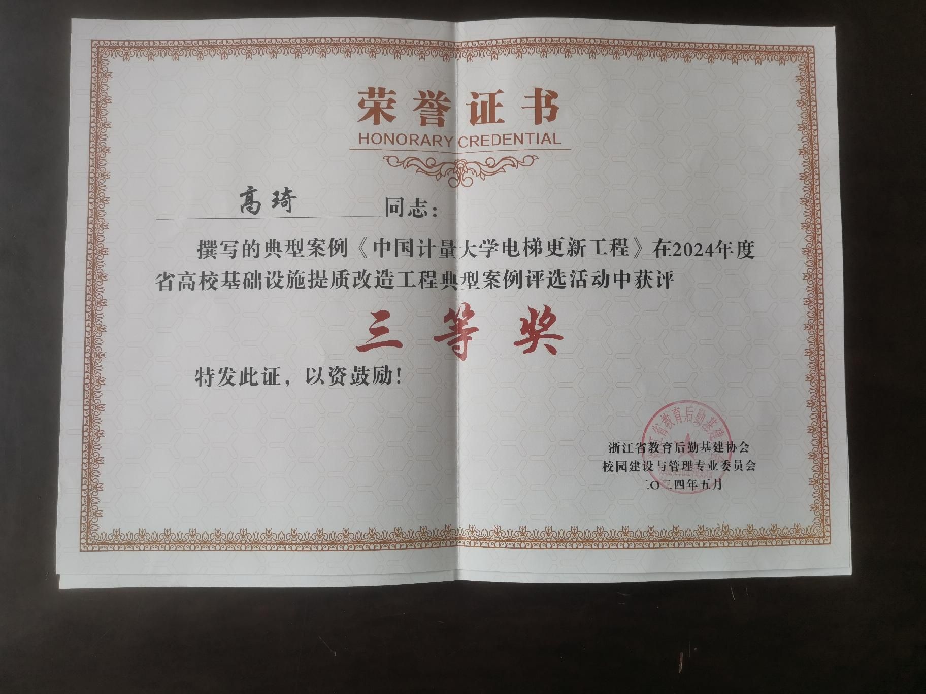 學校申報的電力設備設施全面提質改造工程、智能危化品柜及管控系統建設項目獲典型案例二等獎,電梯更新工程、老舊學生宿舍衛生間改造工程獲典型案例三等獎。同時,學校還榮獲了2024年度浙江省高校基礎設施提質改造工程典型案例優秀組織獎。