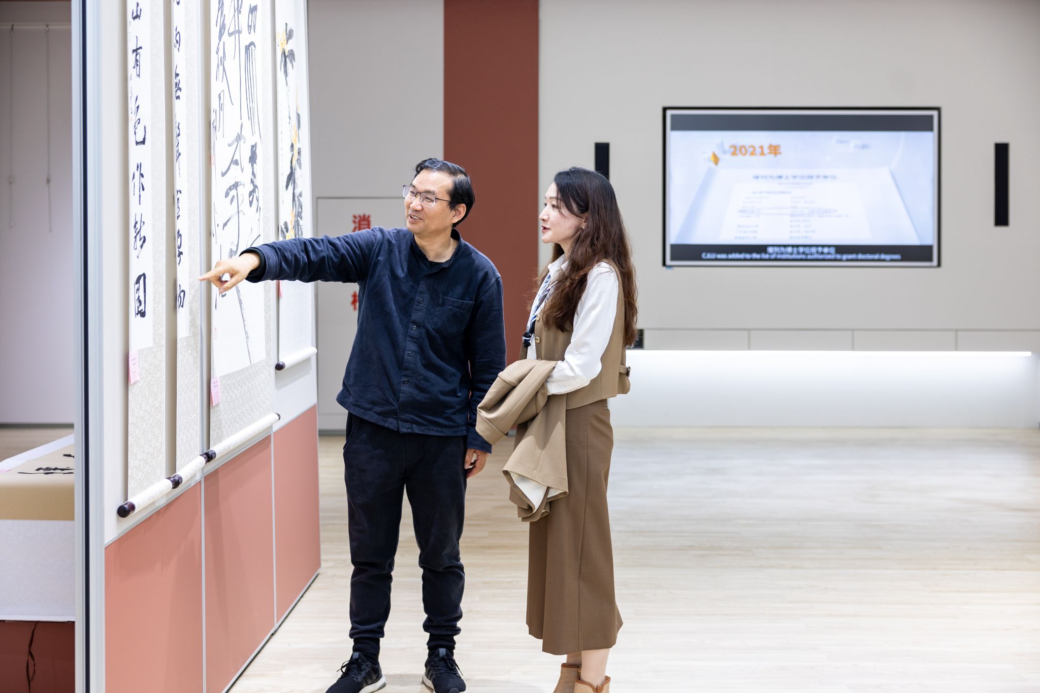 10月28日下午,我校46周年校慶暨第五次書畫展開幕儀式在東校區美術館舉行。校黨委書記徐江榮出席開幕儀式并宣布書畫展開幕。副校長王樂,校發展委員會主任胡建成,校發展委員會副主任、校友總會會長馮時林等出席開幕式。學校相關職能部門及藝傳學院負責人、離退休教師及在校師生代表等參加了開幕式。儀式由對外聯絡處處長陳亮主持。
