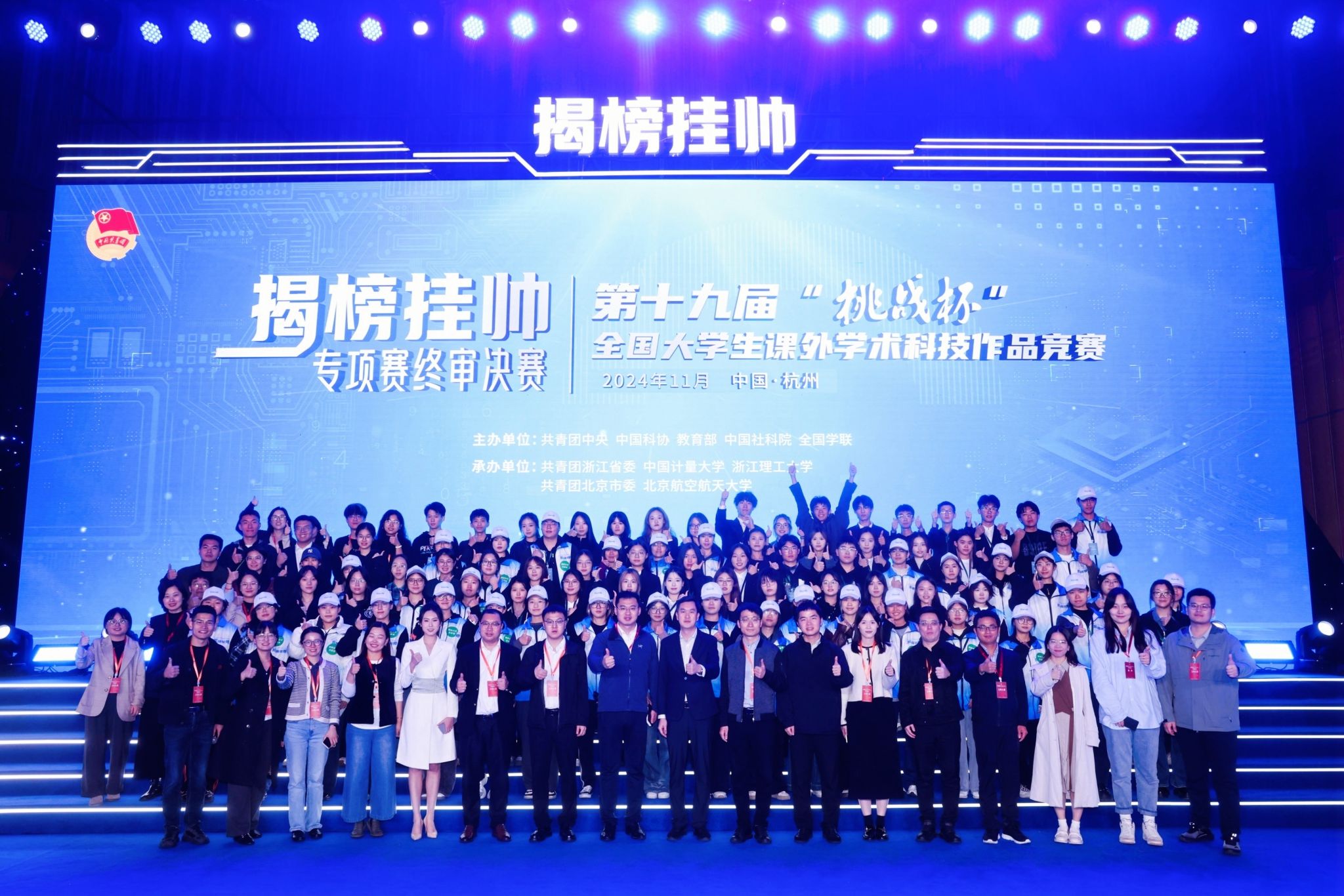 11月17日,第十九屆“挑戰杯”全國大學生課外學術科技作品競賽2024年度“揭榜掛帥”專項賽終審決賽在我校落下帷幕。經過激烈的角逐,我校共有24個項目入圍終審決賽,最終斬獲特等獎5項,特等獎數量位列全省第二,其中“揭榜掛帥”擂主2個(特等獎中得分第一),擂主總數位列全國第五、全省第二,是我校在“挑戰杯”競賽“揭榜掛帥”專項賽中取得的歷史性突破。