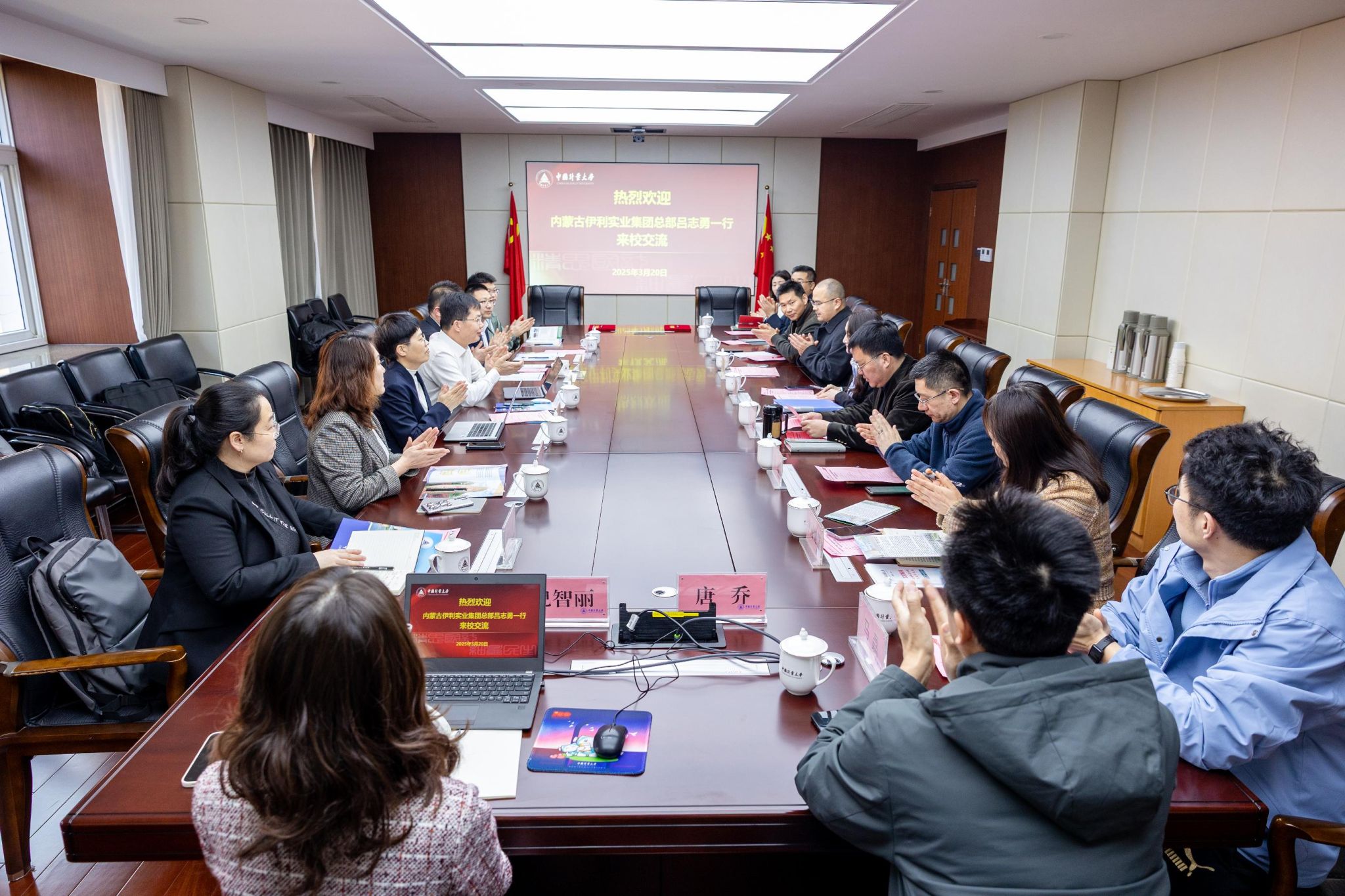 3月20日上午,我校與伊利實業集團股份有限公司戰略合作簽約儀式在校內舉行。繼此前多次交流互訪與前期合作探索后,雙方正式達成全面戰略合作。伊利集團總部質量管理部總經理呂志勇等一行人,副校長王樂,科研院、外聯處、生命學院等單位負責人及相關教師參加簽約儀式。