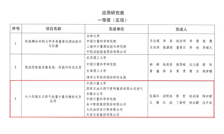大口徑高壓長輸管線上的流量計量關系國家利益。該項目啟動前,我國天然氣管線流量計量存在國內產品測不了,缺乏標準裝置檢不了兩大痛點。對此,由中國計量大學牽頭,聯合國家石油天然氣管網集團有限公司西氣東輸分公司、中國計量科學研究院、金卡智能集團股份有限公司、大慶油田設計院有限公司、天信儀表集團有限公司等多家單位,開展產學研用技術攻關,取得了三個方面的創新成果:研發超聲和渦輪流量計,掌握了管輸流量的定量權;研制mt法原級流量標準裝置,掌握了流量計質量優劣的定質權;建立了實流高壓天然氣流量量傳和溯源體系,獲得了國際主動權。項目制定國家標準6項,發表論文39篇,授權發明專利32件,近三年新增收入超7億元,保障了我國天然氣管線正常運行和能源安全,結束了我國大口徑高壓天然氣流量計只能國外送檢的歷史。