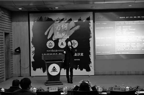 交流會上,杭州市眾創(chuàng)空間聯(lián)盟秘書長李艷萍分享她的“大學生創(chuàng)業(yè)觀”,還向在校大學生發(fā)出邀請,歡迎更多“創(chuàng)客”來參加路演。