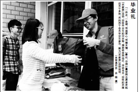“一件衣,一條裙,傳遞愛心,傳播友情?!弊罱袊嬃繉W院志愿者發起“衣家親”活動,回收畢業生的舊衣物,捐助給貧困地區?;顒赢斕欤厥盏囊路_五千多件,共約兩千余名畢業生參與。圖為“衣家親”活動現場。
