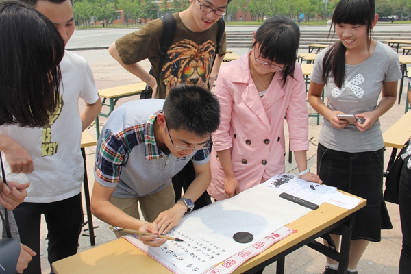 昨日,中國計量學院百名大學生在校園內拾起毛筆,抄孝經、寫家書,在古箏的配樂聲中,共同“烹飪”出一道書法盛宴,在母親節來臨之際,為她送上一份特別的禮物。