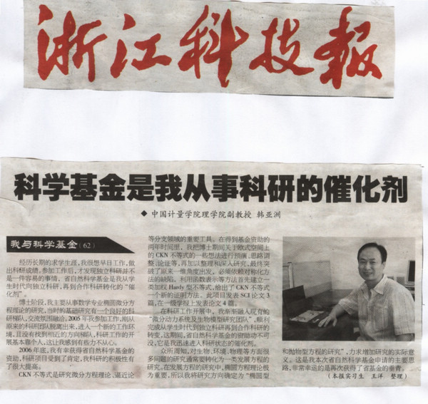 11月18日,《浙江科技報》在2版“我與科學基金”欄目發表了題為《科學基金是我從事科研的催化劑》的文章,報道了我校理學院副教授韓亞洲的科研故事。