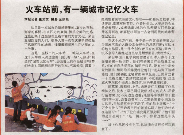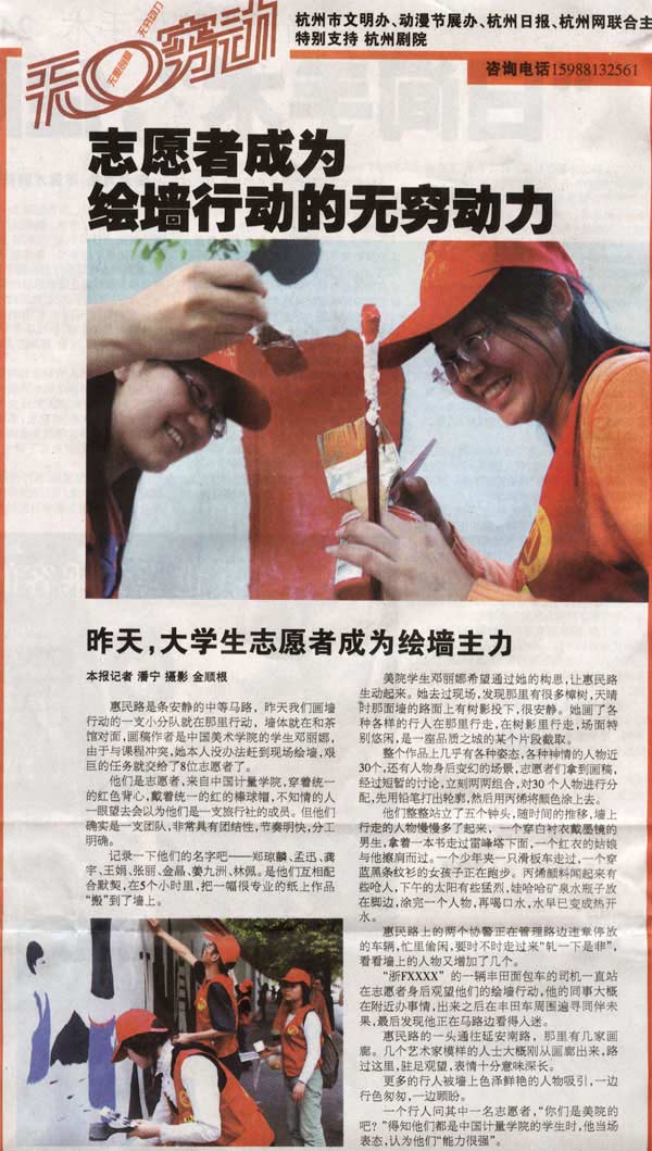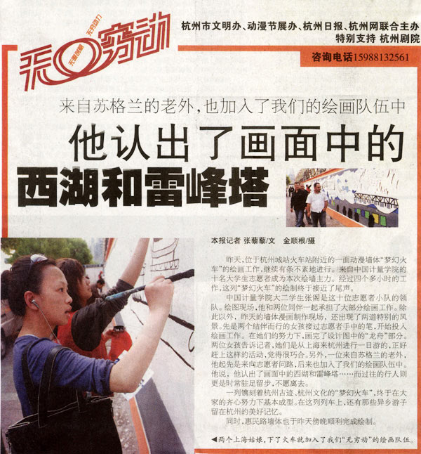 《杭州日報(bào)》報(bào)道我校志愿者在動(dòng)漫墻繪制活動(dòng)中的情況