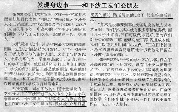 《浙江日報》2007年6月28日在第14版《調查》欄目報道了我校“共創和諧,從我做起”大學生社會實踐創意方案。   全文節選如下: