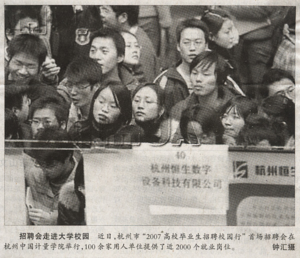 《光明日報》刊登圖片報道“2007高校畢業生招聘校園行”首場招聘會在我校舉行