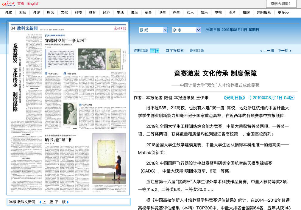 既不是985、211高校,也沒有入選“雙一流”高校,地處浙江杭州的中國計量大學學生創業創新能力卻毫不遜于國家重點高校,在近兩年的各項賽事中捷報頻傳: