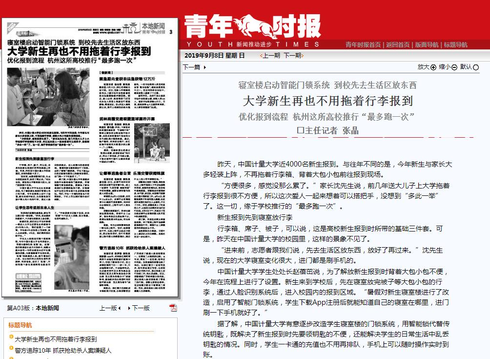 [青年時報]新生,再也不用拎著行李報到了!中國計量大學為學生推行“最多跑一次”的便利