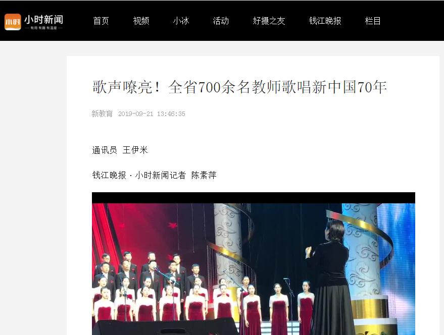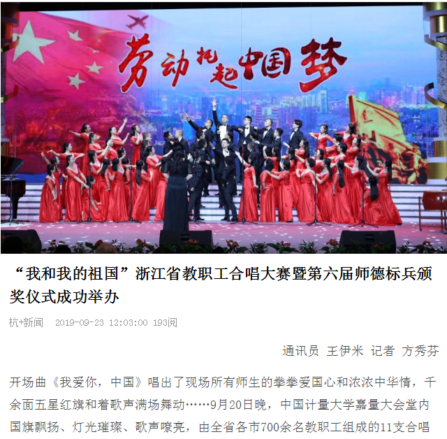 [杭州日報新聞客戶端]“我和我的祖國”浙江省教職工合唱大賽暨第六屆師德標兵頒獎儀式成功舉辦