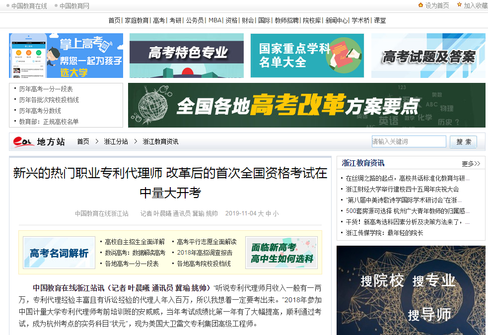 [中國教育在線]新興的熱門職業專利代理師 改革后的首次全國資格考試在中量大開考
