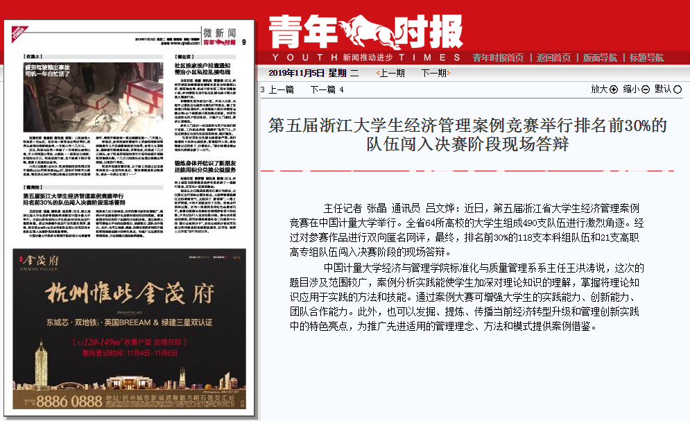 [青年時報]第五屆浙江大學生經濟管理案例競賽舉行排名前30%的隊伍闖入決賽階段現場答辯