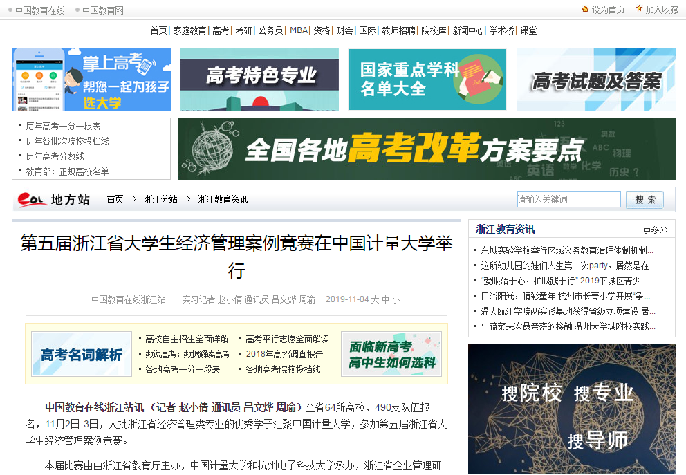 [中國教育在線]第五屆浙江省大學生經濟管理案例競賽在中國計量大學舉行