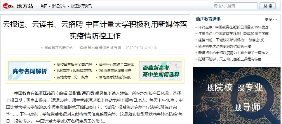 [中國教育在線]云報送、云讀書、云招聘 中國計量大學積極利用新媒體落實疫情防控工作
