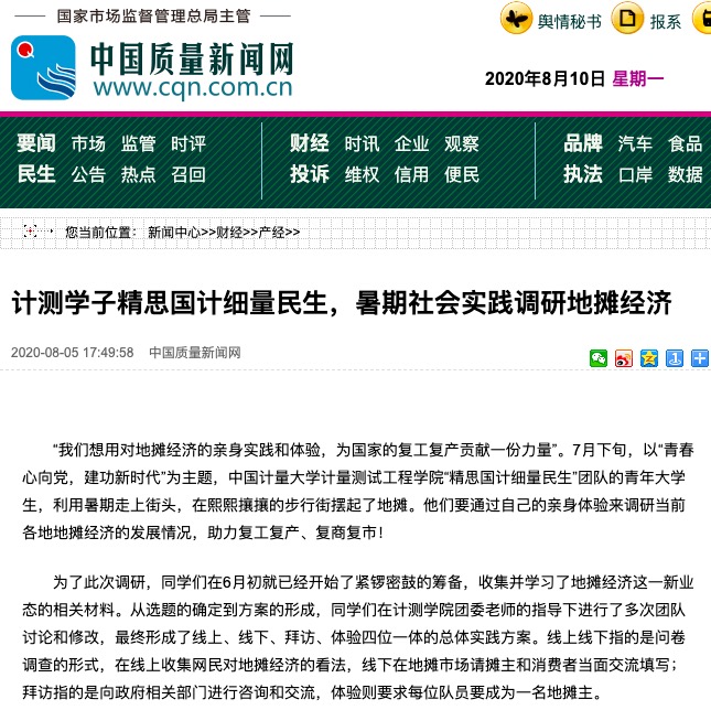 青春心向黨,建功新時(shí)代。精思國(guó)計(jì)細(xì)量民生的計(jì)測(cè)學(xué)子,以服務(wù)人民為宗旨,以深入群眾為渠道,以助力國(guó)家復(fù)工復(fù)產(chǎn)、復(fù)商復(fù)市為目標(biāo),以青春的熱情為動(dòng)力,相信他們一定能在這個(gè)假期能為國(guó)家和人民作出屬于他們的青春貢獻(xiàn)!