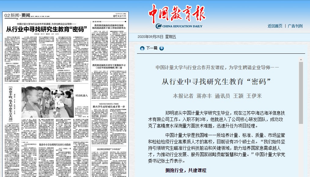 學校也面臨沒有可供參照人才培養模式,缺乏專門課程和教材等難題。答案從哪找?中國計量大學嘗試問計行業機構和企業,共建研究生教育課程。