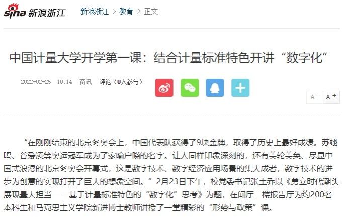 [新浪浙江]中國計量大學開學第一課:結(jié)合計量標準特色開講“數(shù)字化”
